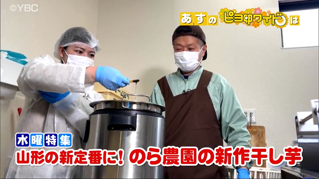 コメ栽培や農産物加工を手掛ける上山市の農園とピヨ卵がコラボ!チョコがけ干し芋などの新商品を開発した。干し芋は寒さにさらして1週間熟成させ甘みを引き出した。アナウンサーの中田妃那が加工現場を取材。地域の農業を盛り上げたいと奔走する園主の思いと商品へのこだわりに迫る。