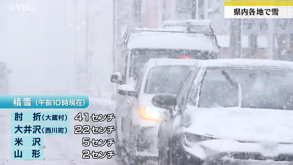 横殴りの激しい吹雪となった所も…冬型の気圧配置の影響で山形県内各地で雪 大蔵村肘折は積雪41センチ(12日午前10時時点)