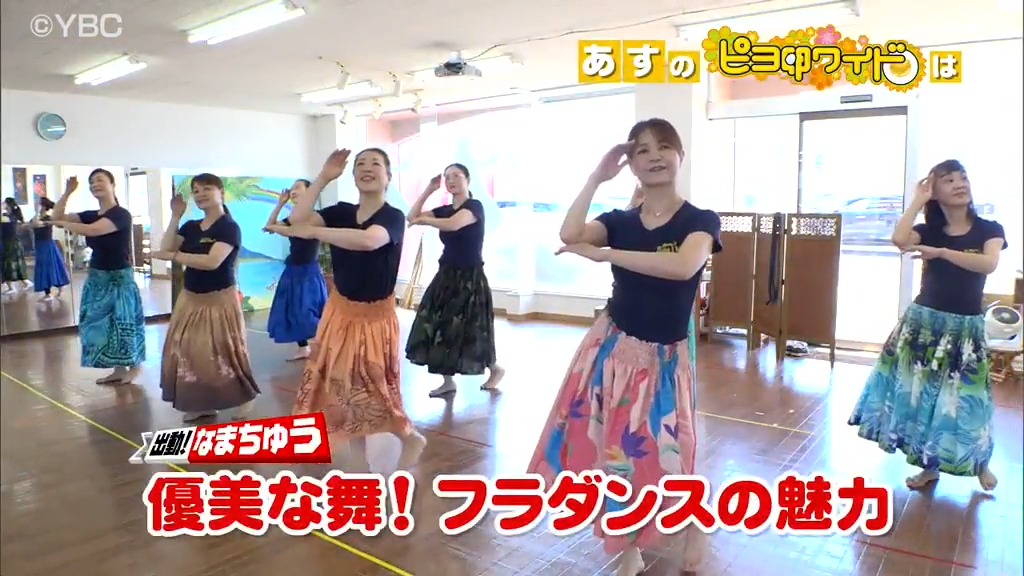 「出動!なまちゅう」は、山形市のフラダンス教室から生中継する。優美な動き1つ1つに意味を持たせて歌の内容を伝えるフラダンス。生徒は子育てを終えた50~60代の女性が中心だ。スローテンポな曲に合わせて優雅に踊る。フラダンスに魅了された彼女たちの思いにも迫る。