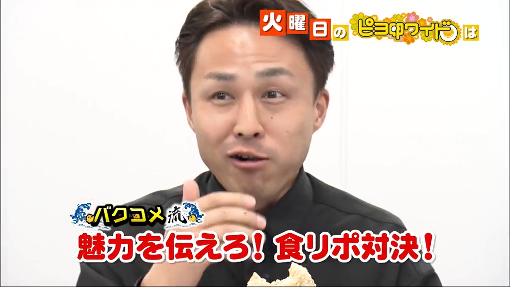 「バクコメ流」は、お笑いコンビのバクコメが食リポ対決を行う。コンビニの新商品、鳥中華とおにぎりを食べて言葉やリアクションで魅力を伝え切る。今まで数多くの食リポをしてきた2人だが、果たしてどちらが上手に食リポをすることができたのか。