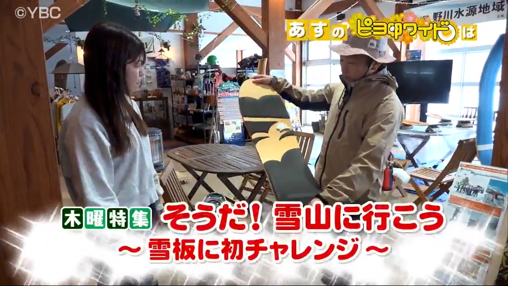 木の板に乗ってスノーボードのように雪上を滑って遊ぶアクティビティ「雪板」にアナウンサーの中田妃那が初挑戦する。長井市の野川まなび館を拠点 に冬季限定で実施する体験ツアーは、雪山を登るスノーシューハイクも楽しみながら初心者でも参加が可能。雪国生活2年目の中田は果たして上手に滑ることができるのか⁉