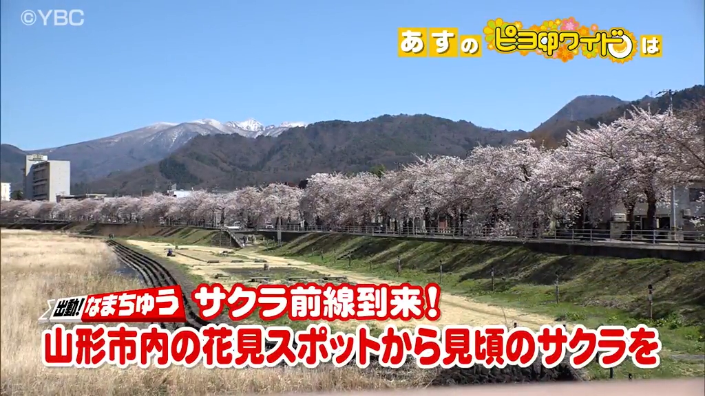 県内は花見シーズン真っ盛り!「出動!なまちゅう」は、約380本のサクラが連なる山形市の花見の名所「馬見ヶ崎さくらライン」からアナウンサーの横山岳が生中継。いま見頃を迎え花が咲き誇るサクラ並木の美しい光景をたっ ぷりと紹介する。