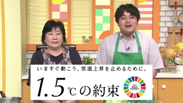 気温上昇・気候変動による影響や防止に向けた取り組みを伝えるニュースに「1.5℃の約束」のロゴを使用し、視聴者に自分ごととしてこの問題を考えてもらえるよう努めました。また初回放送時にはキャンペーンについて説明しました。