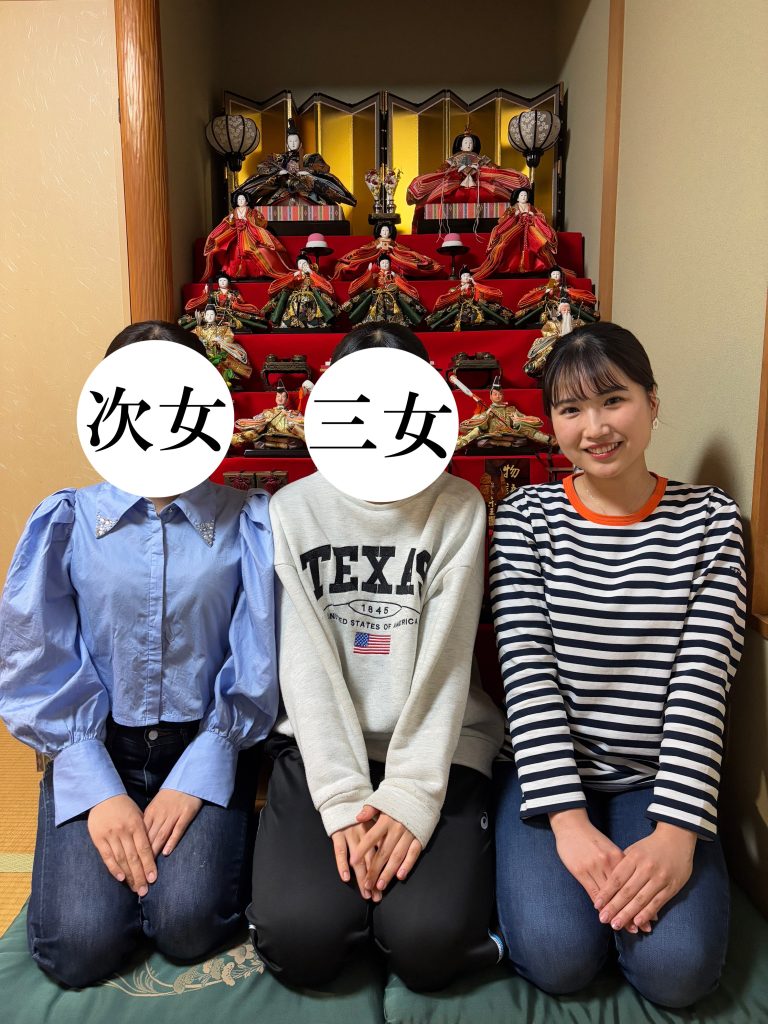 毎年雛飾りの前で撮影するのが恒例でした。