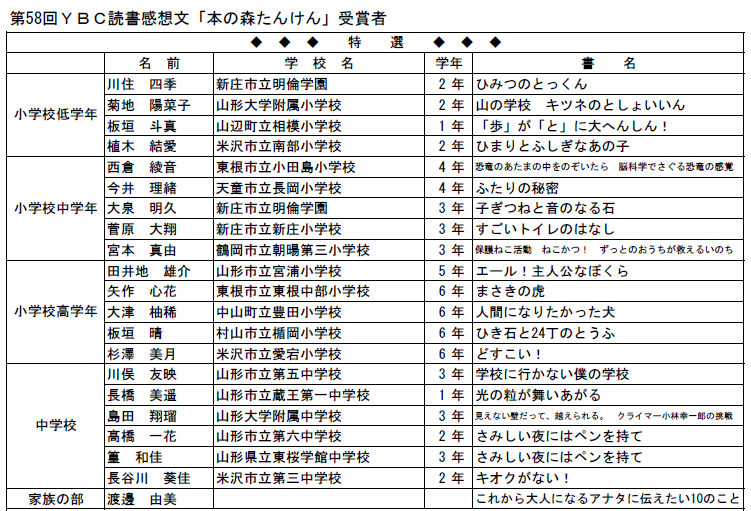 第58回 YBC読書感想文 本の森たんけん