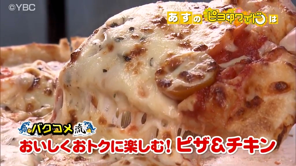 お笑いコンビのバクコメが、ピザとチキンのテイクアウト専門店を訪ねる。ピザ生地は毎日店内で作りし、素材にもこだわったピザ店。期間限定の贅沢ピザと、ボリューム満点のサクサクでジューシーチキン、それに人気のチュロスを紹介する。